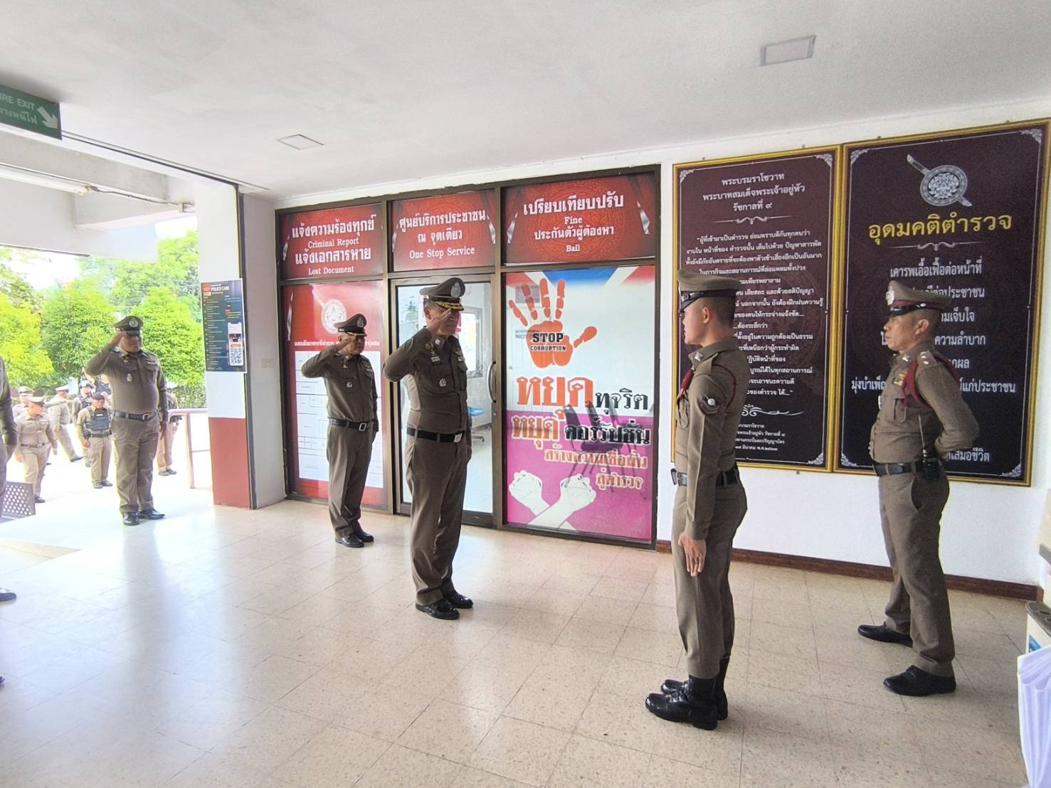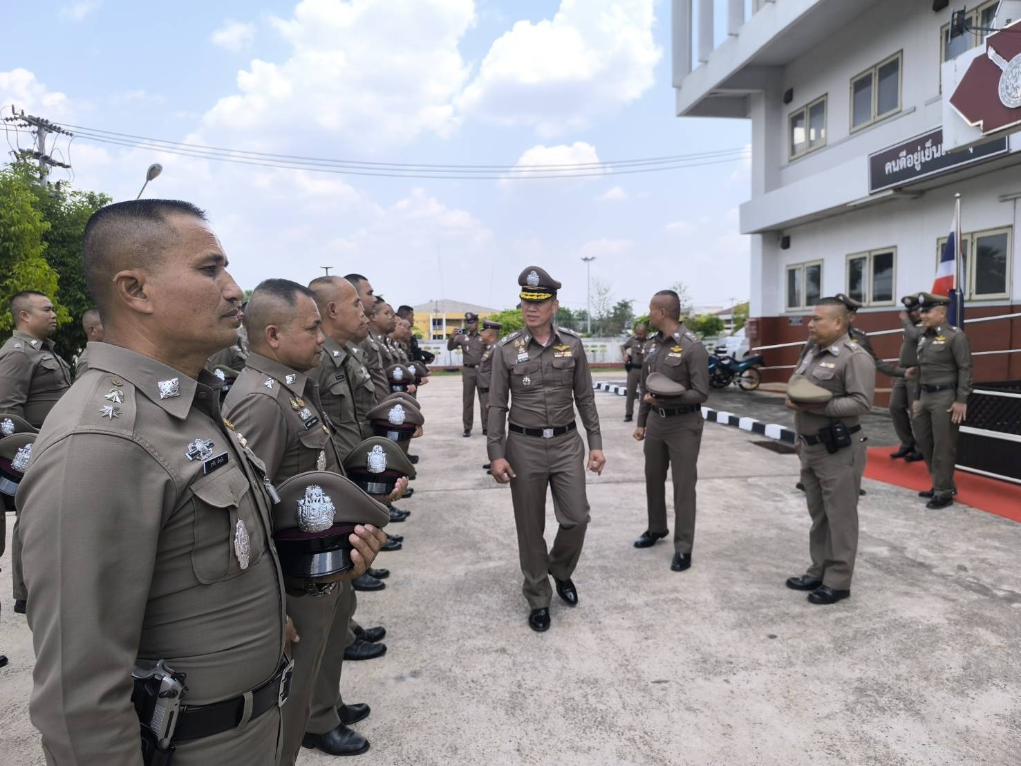 พร้อม หัวหน้าแต่ละสายงาน และข้าราชการตำรวจในสังกัด ให้การต้อนรับ และรับการตรวจราชการ