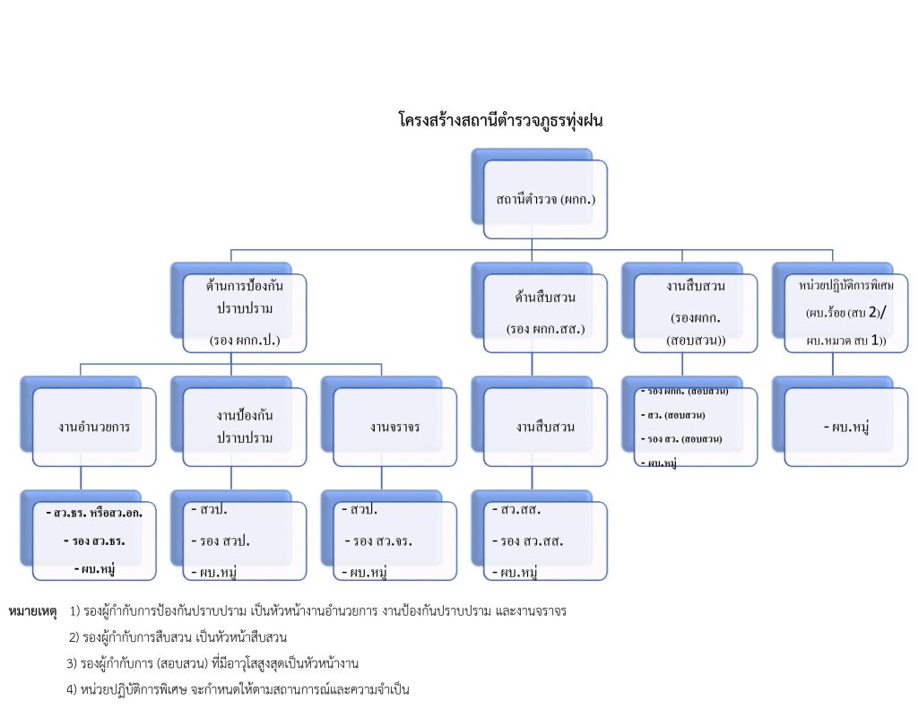 บทบาทหน้าที่สายงานต่างๆ ในสถานีตำรวจภูธรทุ่งฝน